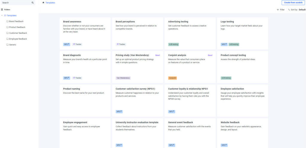 - Templates & flexibility around survey authoring. User-friendly survey authoring tools (bonus if there are survey templates you can leverage) will enable you to easily set up your project so you can quickly start getting the answers you seek. Some platforms will even allow you to insert a link from a survey authored elsewhere if you prefer.