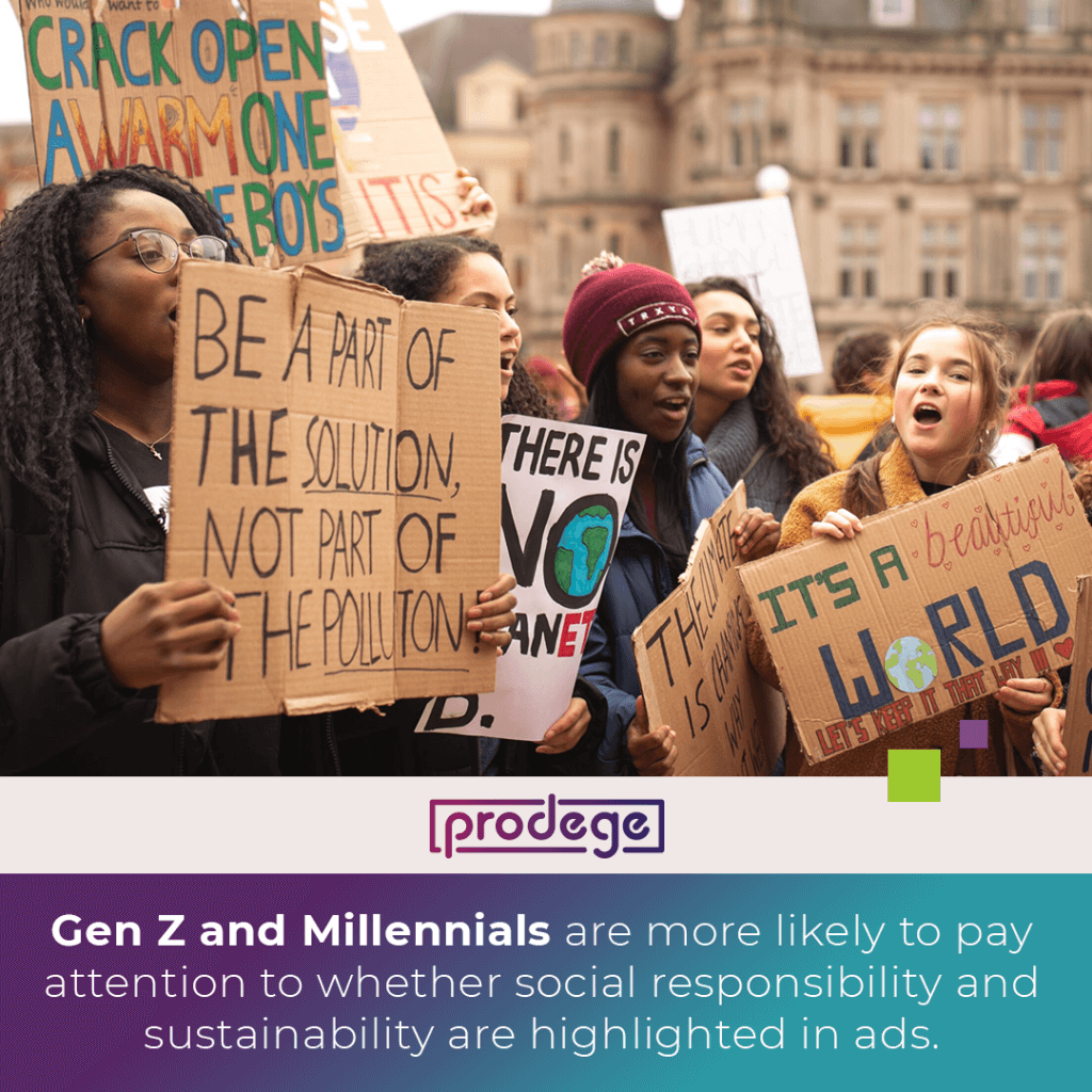 - Echo and Articulate Personal Values: Zoomers want to shop from brands with shared values. Generation Zers care about racial justice, #BlackLivesMatter, gender inclusivity, body positivity, climate change, and the environment. Brands wooing Zoomers must come out emphatically in support of these causes. It is not enough to remain silent or issue-neutral. Our latest research shows that when viewing advertisements, Gen Z and Millennials are more likely to pay very or somewhat close attention to whether social responsibility and sustainability are emphasized (51-60%).