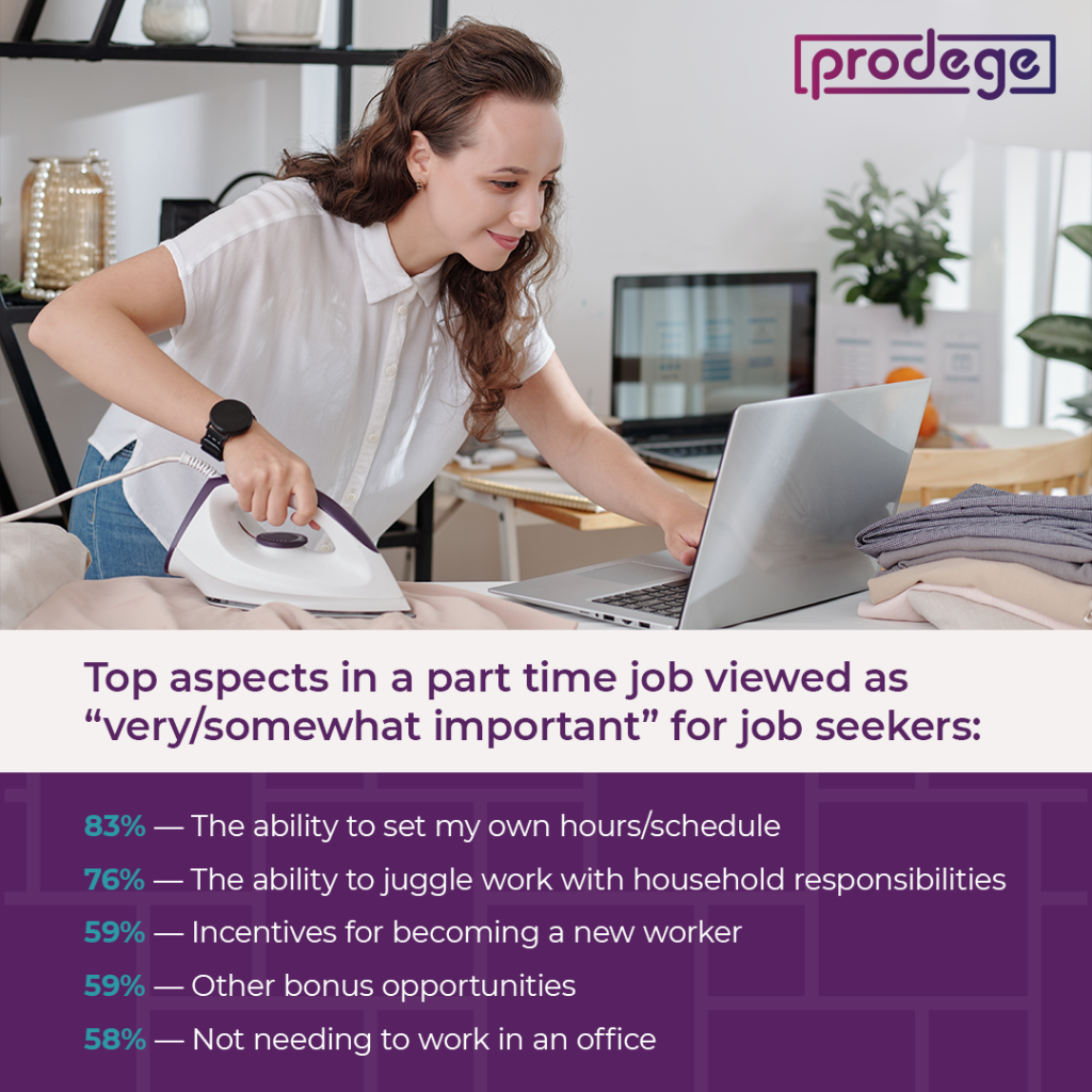 Job hunters currently open to part-time work desire flexibility, freedom, incentives, and bonuses.